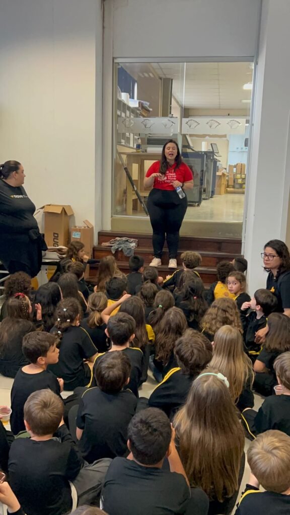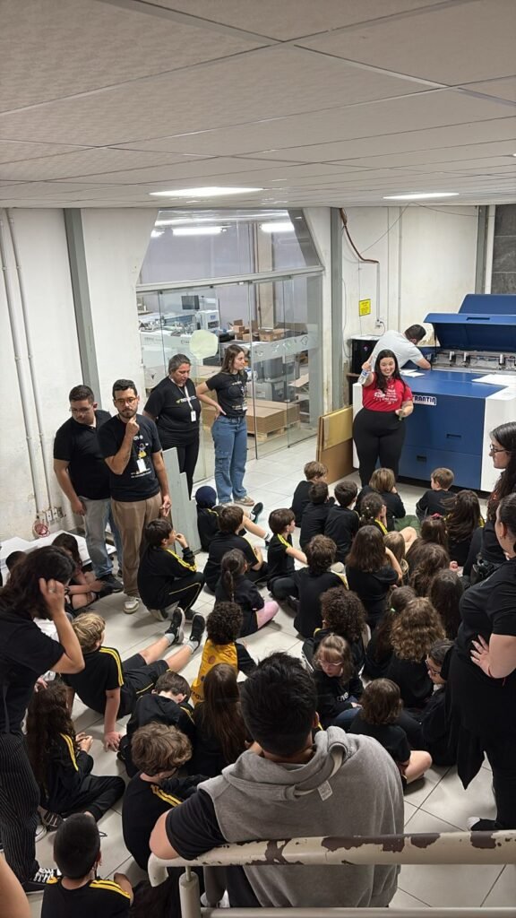 A saída de campo teve como objetivo proporcionar aos estudantes a oportunidade de conhecer de perto a gráfica e a editora, compreendendo como acontece todo o processo de impressão dos livros.